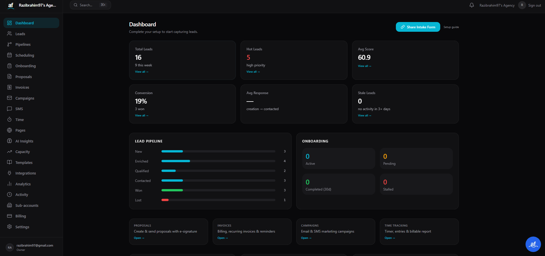 Leads, proposals, invoices, time tracking, campaigns, and up to 29 integrations — all in one workspace built for agency workflows.